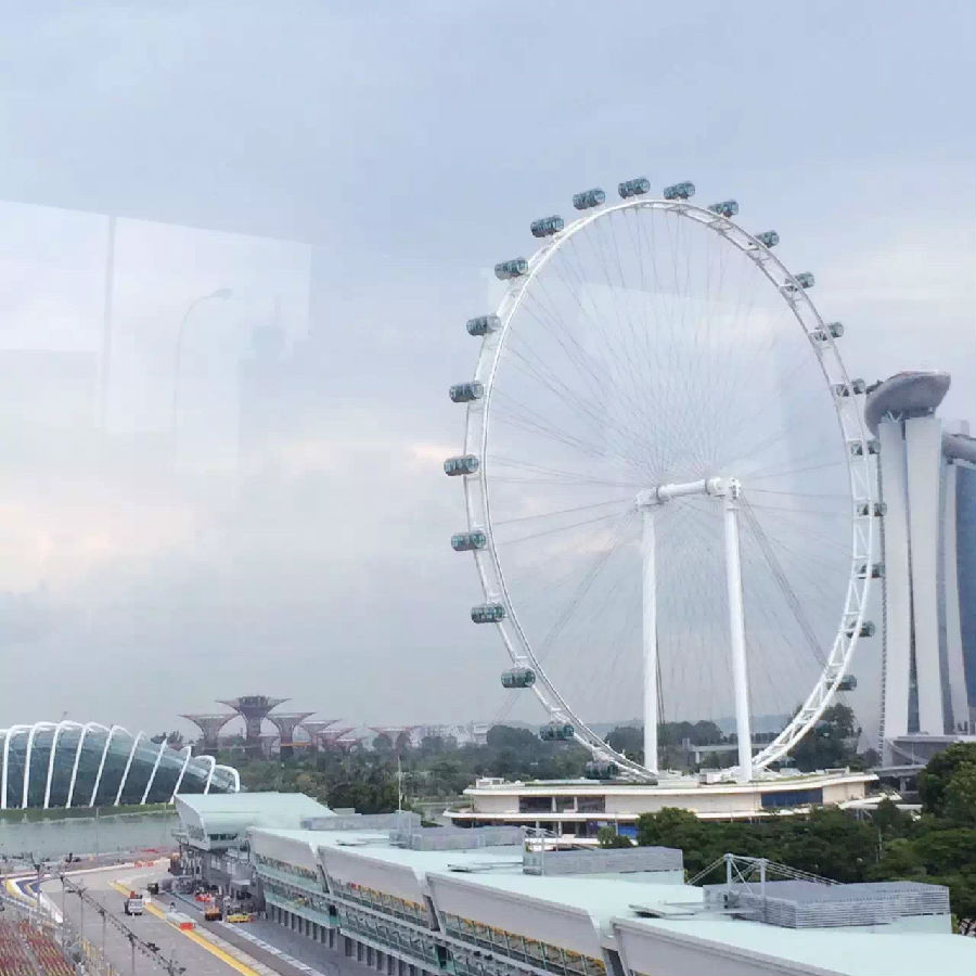 新加坡摩天观景轮是一个位于新加坡的巨型摩天轮。42层楼高的新加坡摩天轮的轮体直径达150米,安置在3层的休闲购物中心楼上,总高度达到165米。可惜短短一天内的行程中,并没有摩天轮这一项让我感到十分遗憾!