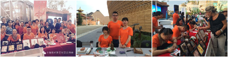 7月下旬的米兰受到北非气候的影响,一直处于38度的高温状态,整个活动的范围也只能在户外进行,条件非常简陋。但师生共同努力,在最糟的环境里展现最好的技能,将我国的传统文化最好的展现给异国他乡的人。在操作展示过程中,众多的游客对这项技艺非常好奇,师生们抓紧时间为他们进行讲解和操作,并邀请感兴趣的外国游客参与活动,由他们自己动手拓印图案,并将拓印好的作品进行装裱赠送,游客们都开心的和教师学生合影留念。