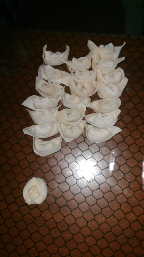 馄饨加水饺,这可全部都是自己做的哦,额,这里面好像有一个很奇怪的东西老是参杂进去,那是我在做水饺的时候突然想到了小笼包,用水饺皮做了一个四不像的面疙瘩,唯一不同的就是里面有肉。。只烧馄饨,水饺存着以后吃,哈哈。自己做的味道就是不一样,两个字,好吃。内个面疙瘩也蛮好吃的。