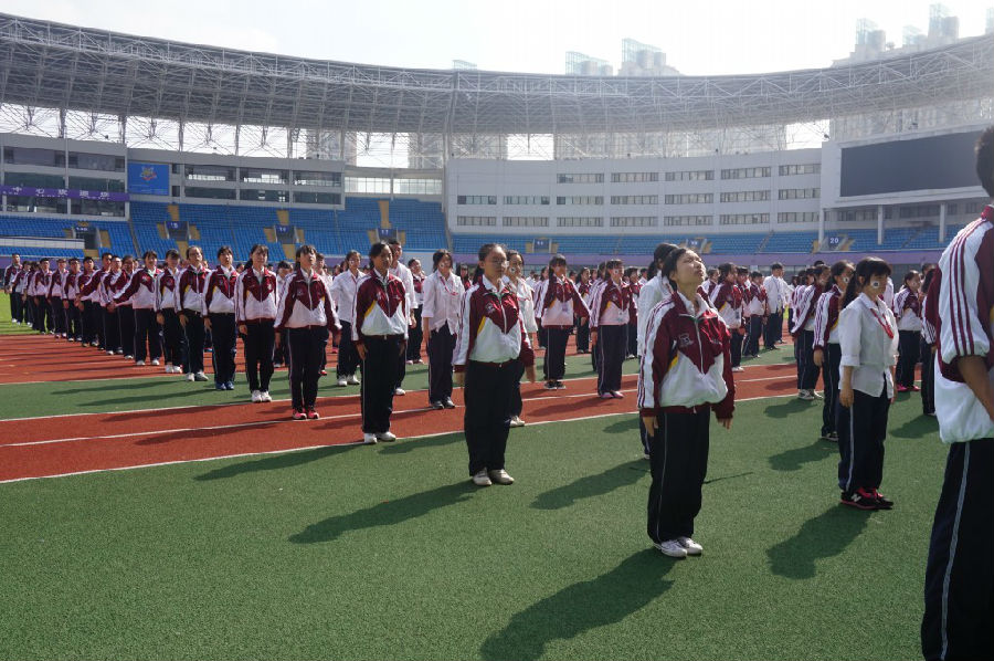 2015年10月23日上午9:30分,我校在上海浦东源深体育中心开展了校园运动会。本次广播操比赛是由徐崔华老师为总裁判长,孙海明,黄丽萍,李晨海,龚武斌,尹淑风老师为广播操裁判。这次广播操比赛由我校15届的10个新生班级来参加比赛。