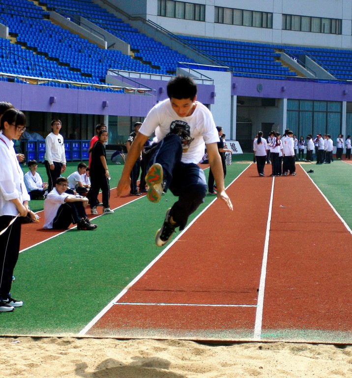 第二个个人单项——跳远。田径运动跳跃项目。又名急行跳远。由助跑、起跳、腾空和落地等动作组合而成。运动员沿直线助跑,在起跳板前沿线后用单足起跳,经腾空阶段,然后用双足在沙坑落地。比赛时以跳的远度决定名次 。跳远需要极强大的爆发力,检录处的同学一刻也不敢让自己闲着,他们需要不断的热身让自己维持状态。比赛开始后,每位同学都尽自己的全力一跃冲天,平均都跳了4米的远度,成绩本不是最重要得,但同学们跳完之后满足的表情说明了他们明白过程的珍贵。1509班的刘嘉骏同学,平日里热爱跳远,他那离弦箭似的助跑,蚂蚱似的起跳,空中的走步表演,引起阵阵惊叹,落地的瞬间,他触到了沙的柔软,不管怎样,荣誉永远属于他。