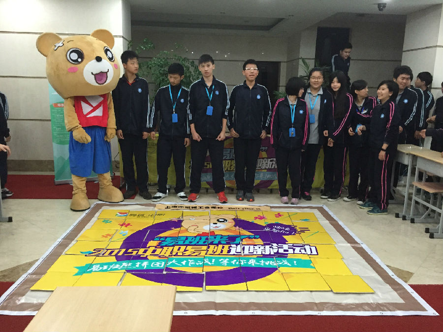 2015年10月29日的中午,对于上海市机械工业学校的全体一年级新生来说或许是一个特殊的日子,在这一天,我们终于迎来了期待已久的中职易班迎新拼图活动。活动当天,我们很荣幸的邀请到了来自上海市易班管理中心的胡老师和钭老师和我们共同见证这样一个神圣的时刻。虽然天公不作美,下起了毛毛细雨,我们的活动被迫从操场转移到了教学楼一楼大厅,这对我们的活动多多少少造成了一些影响,但这丝毫没有影响到同学们的热情。或许,在同学们看来,这一场秋雨更是对我们拼图活动的一个小小的考验,会场的热烈气氛与室外的阵阵寒意形成了鲜明的对比,同学们积极参与各项小游戏,各个展台前气氛热烈,尤其是在拼图活动的现场,来自各个新生班级的10位同学,在没有任何排练的前提下,通力协作,以4分10秒的成绩取得了拼图活动第五名的好成绩,用自己对拼图活动的热情和对中职易班的热情回应了这秋雨带来的不便。