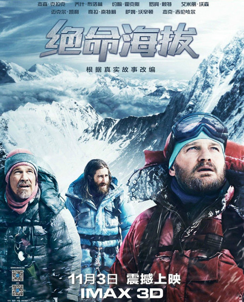 剧情简介:友善谨慎的新西兰领队罗布·霍尔(杰森·克拉科 Jason Clarke 饰),他的队伍名为“冒险顾问”;而斯科特·费雪(杰克·吉伦哈尔JakeGyllenhaal 饰)则风趣搞怪,他带领来自西雅图的“疯狂山脉”登山队。在攀登过程中,他们的身体机能急速下降,在应对体力衰竭、缺氧、雪盲的同时,他们又极为不幸地遭遇了一场剧烈的暴风雪,因此命悬一线。影片改编自1996年的一次真实探险经历。