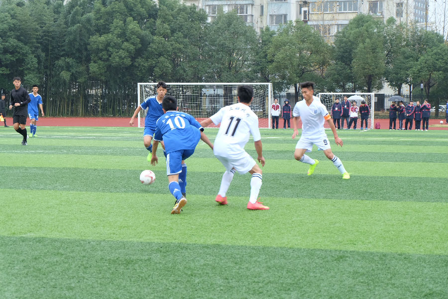 2015年11月22日,我校前往工商信息学校和上航技校的球员进行了一场足球比赛。当日虽然阴雨绵绵,但这并没有阻挡住同学们的热情。我方球员在操场上积极地做着赛前准备。
