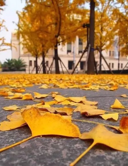 上海音乐厅门前有许多银杏树,寒风骤起的时节,这里就像金色的童话世界。厚厚的金色地毯,总是引来不少路人驻足拍照。