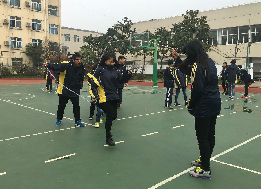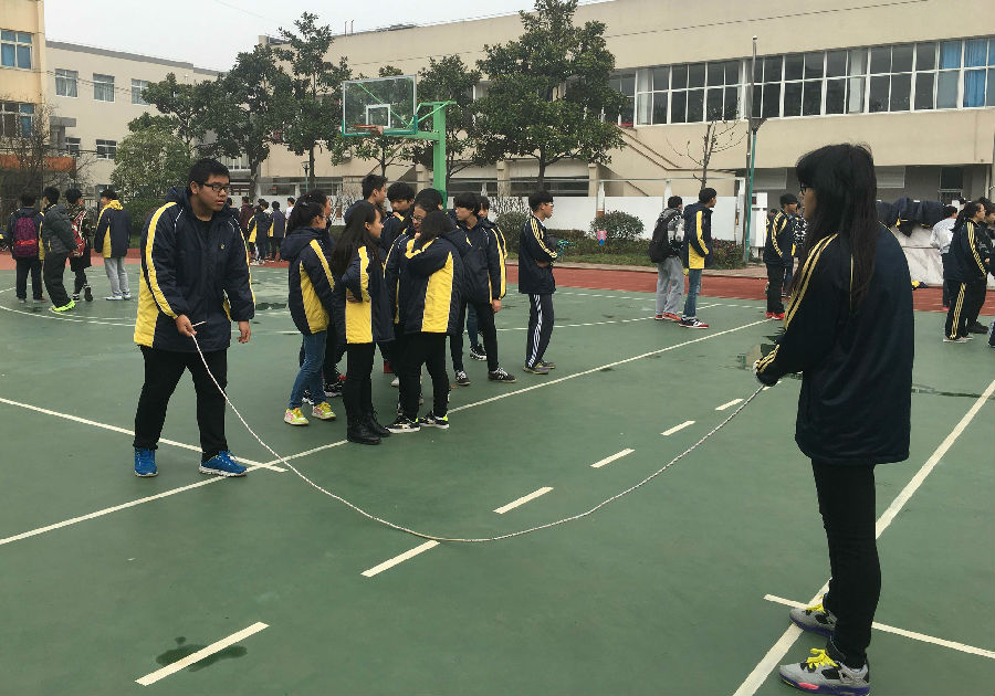 呼呼作响的寒风声、绳与地的碰撞声、轻快动感的音乐声……还有那粗壮的喘息声,一时之间响彻了整个操场,点燃了整个校园的氛围。